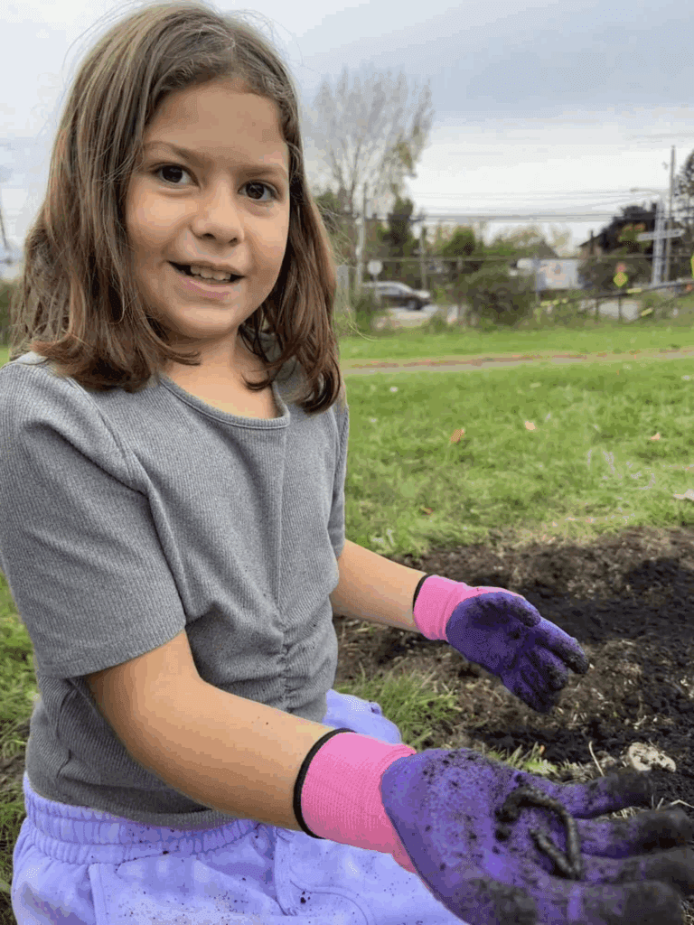 The pollinator garden plantings coincided with science lessons at both schools, and involved traditional teachings about plants and their pollinators, and a seed song in Kanien’kéha. The Kahnawà:ke Shakotii’takehnhas Community Services Primary Prevention Team provided culturally relevant teachings, including about the Creation Story, traditional knowledge of keeping and planting seeds, and planting according to the moon phases. The students learned the names of the plants in their language.