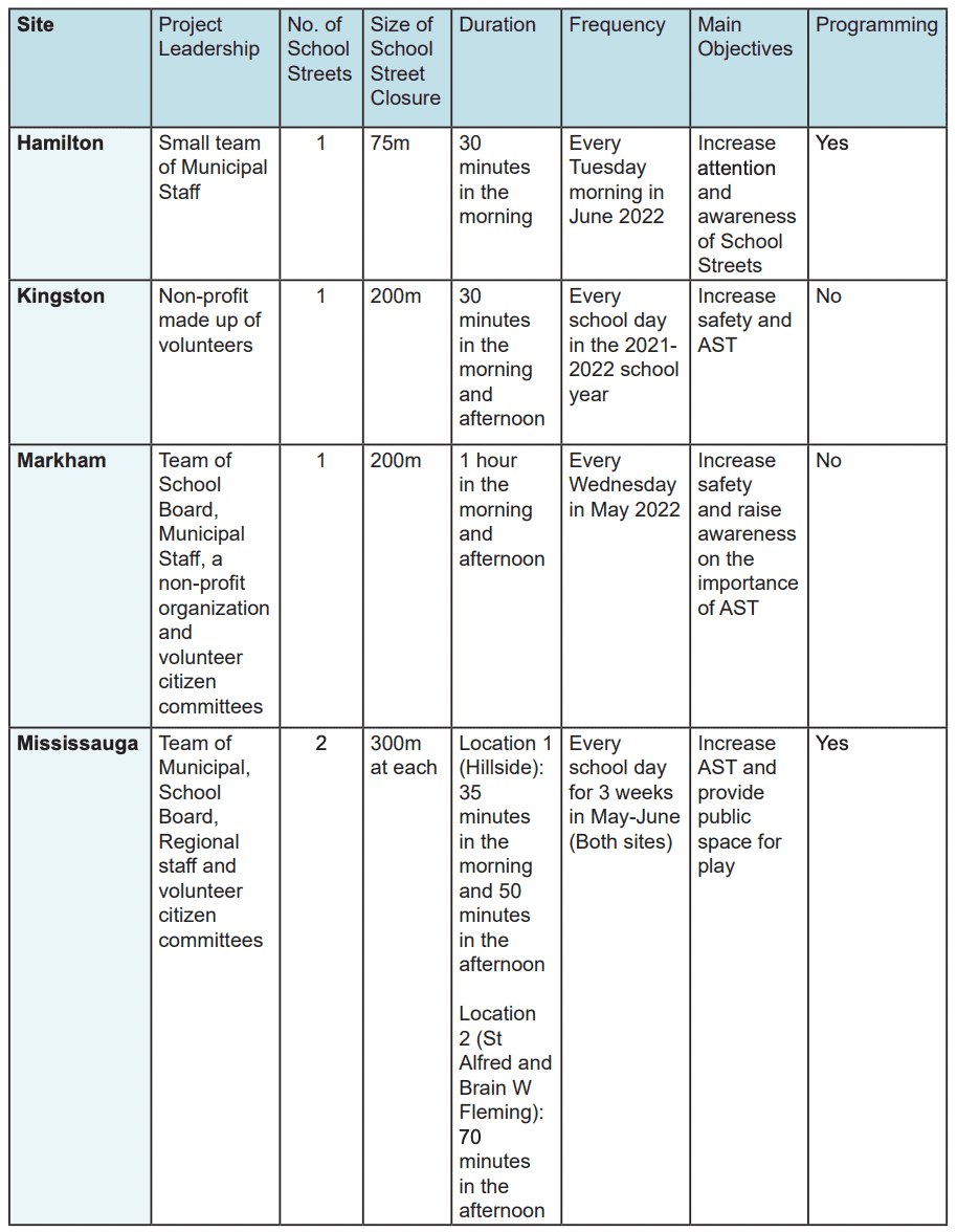 This information can be found in the newly released Ontario School Streets Pilot Program Summary Report.