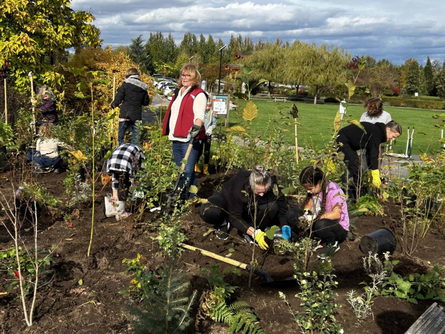 Participants enjoyed the day and expressed their interest in returning to the site to continue to watch it develop. The newly created mini forest is located adjacent to a developing food forest and community orchard, and will serve as a demonstration hub of collaborative community projects. The project was developed by the Township of Langley Parks staff and LEPS staff, alongside volunteer members of local environmental stewardship groups and university students. On planting day, volunteers included Urban Indigenous and Metis youth, BIPOC participants, as well as newcomers from Ukraine. These new Canadians shared with LEPS that planting trees in the fall is a tradition in Ukraine and that, prior to the conflict, gathering with loved ones to plant trees in parks once was a common event. They were grateful to have an opportunity to continue this practice in Canada.