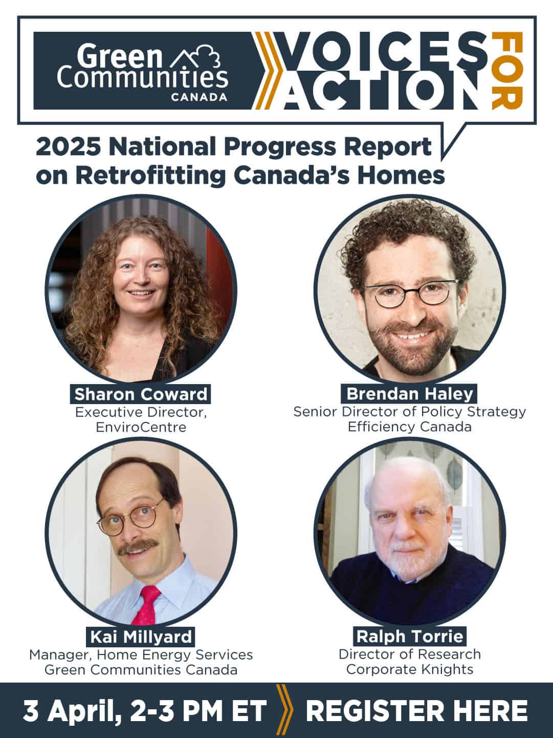 The Canada Greener Homes Grant accelerated the pace of retrofits, and we are excited to dig further into the impacts of this program with the April 3 release of our 2025 National Progress Report on Retrofitting Canada’s Homes. Register here for our Voices for Action webinar to join us for a special panel discussion as we release that report.