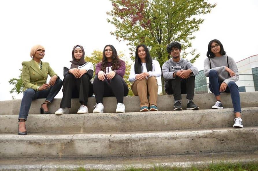 Pictured (left to right): Jay Pitter (Principal Placemaker), Noor Alshobaki, Ava Dikbikian, Armi de Francia (Active Transportation Coordinator, Town of Ajax), Sean Nishanthan, and Meghana Gorrepati Augustin.